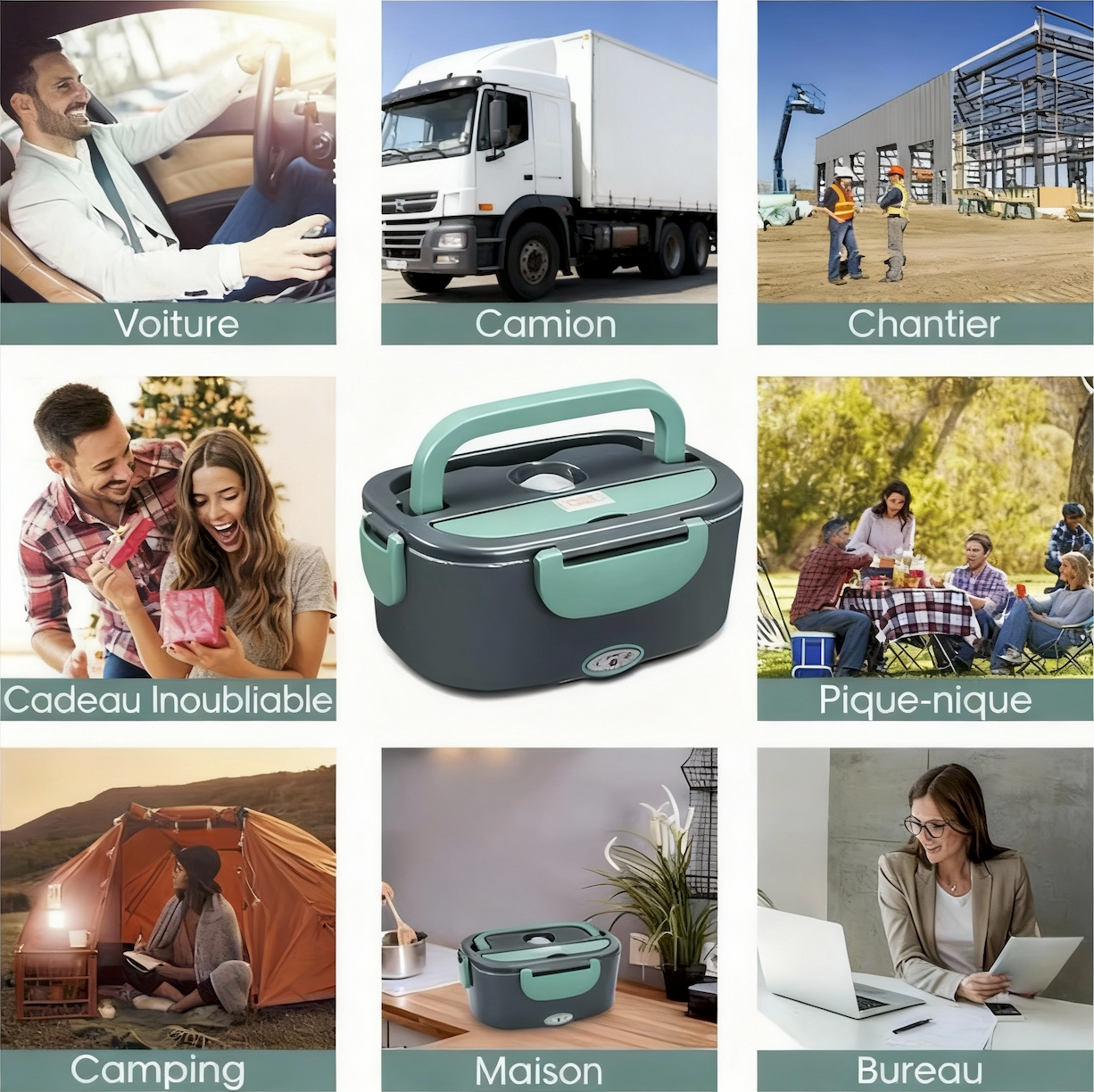 Que ce soit en voiture, au bureau, sur un chantier ou en camping, profitez d’un repas chaud et savoureux à tout moment grâce à notre Lunch Box Chauffante.
